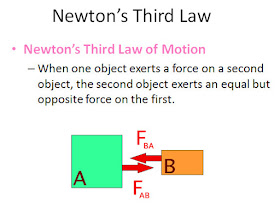 Newton's third law of motion [: when a first body exerts a force F1 on a second body, the second body simultaneously exerts a force F2 = −F1 on the first body. This means that F1 and F2 are equal in magnitude and opposite in direction]